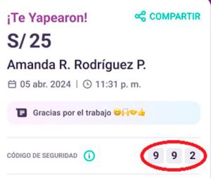 - Tener a la mano el código de seguridad generado por Yape o el código de operacion de Plin